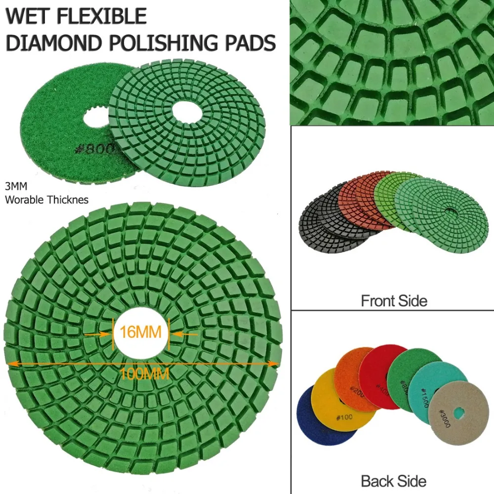 DIAOOL спиральные алмазные гибкие шлифовальные диски 4 дюйма #200 для влажной полировки камня, керамические шлифовальные диски Премиум-качества 100 мм, 5 шт.