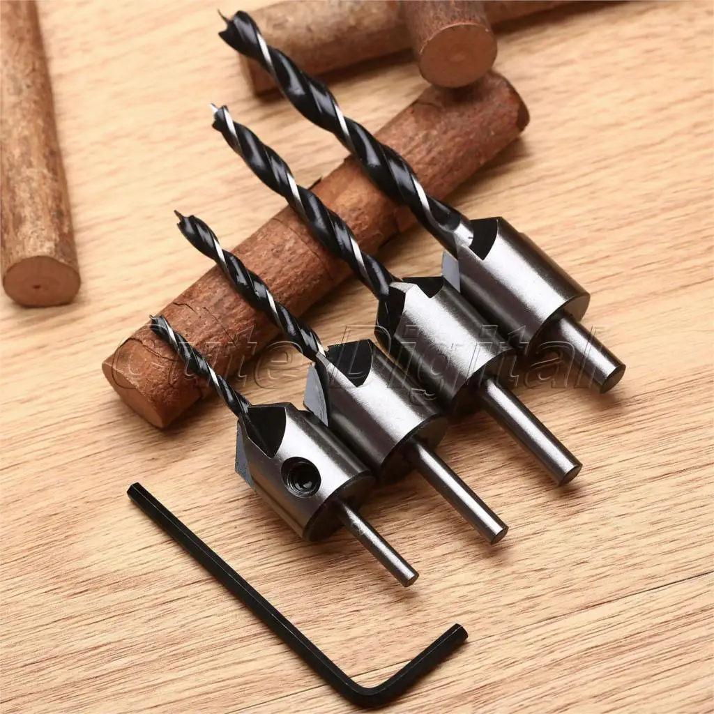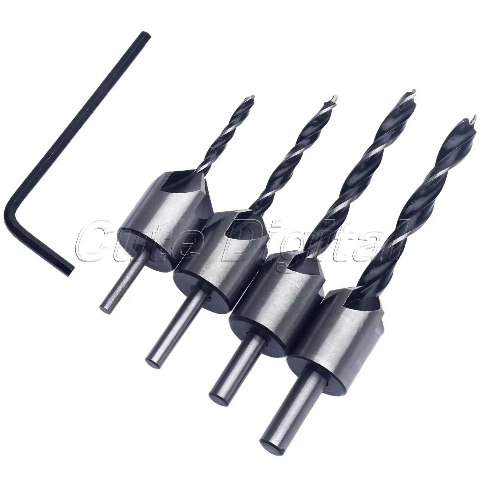 4 шт., 3 мм-6 мм, HSS сталь, флейта, Зенковка, набор сверл, отвертка, деревообрабатывающий инструмент, фаска, Dremel инструменты, дрель, электроинструменты