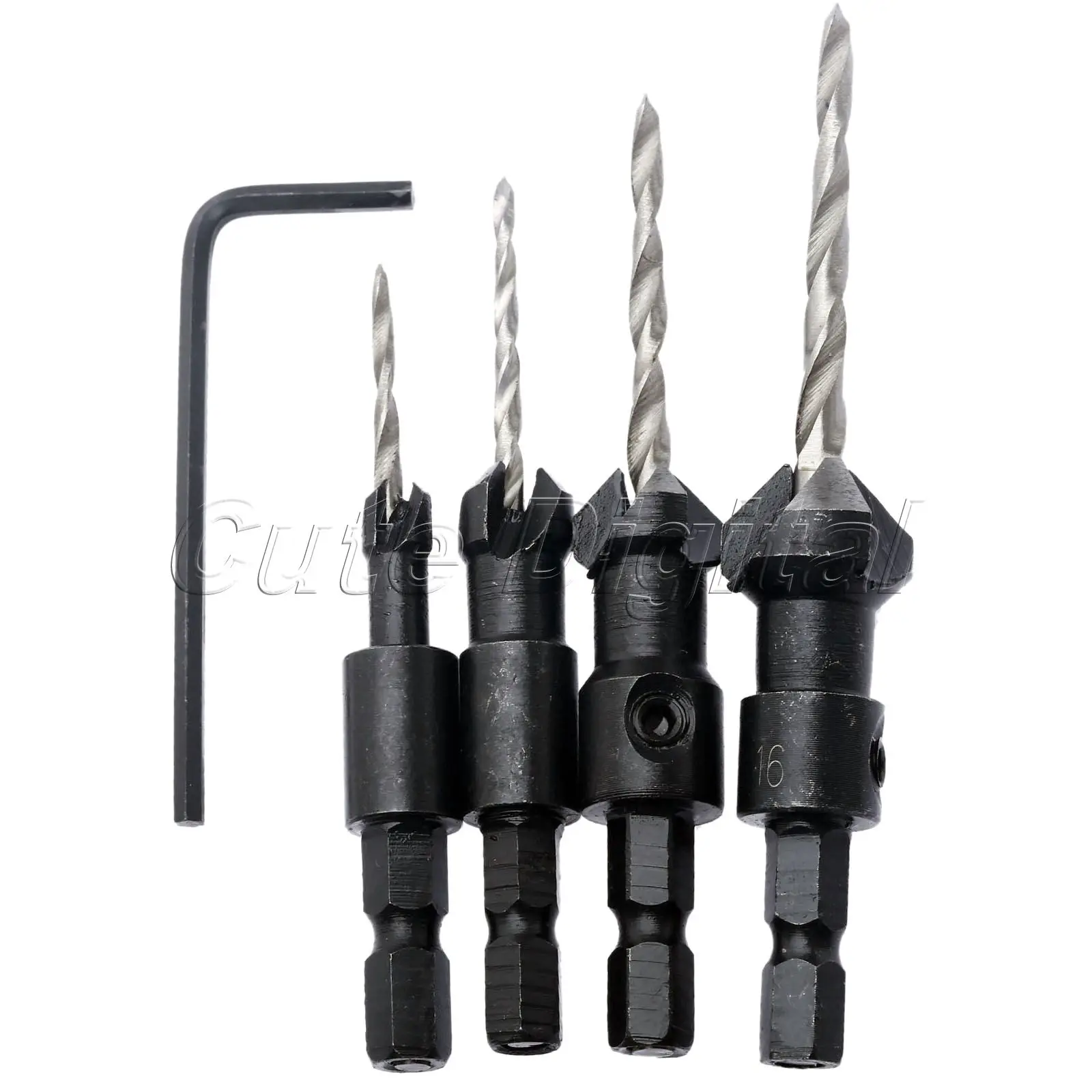 DRELD 4 шт. быстросменный шестигранный хвостовик из быстрорежущей стали для столярных работ набор сверл для зенковки Отверстие пила деревообрабатывающие мини сверла + гаечный ключ #6 #10 #13 #16