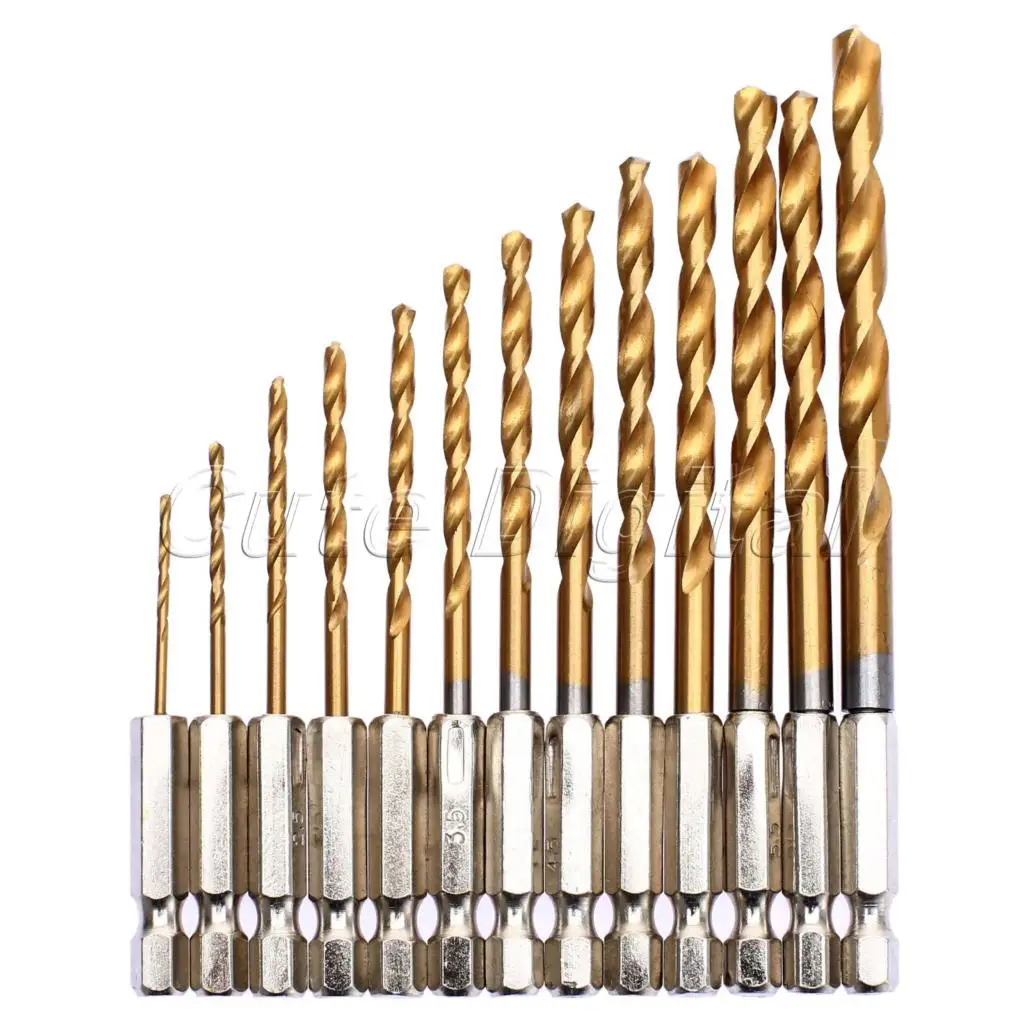 13 шт./компл. 1,5-6,5 мм HSS высокоскоростная стальная титановая ступенчатая дрель бит шестнадцатеричный хвостовик набор сверл для электрического бурения инструменты для деревообработки