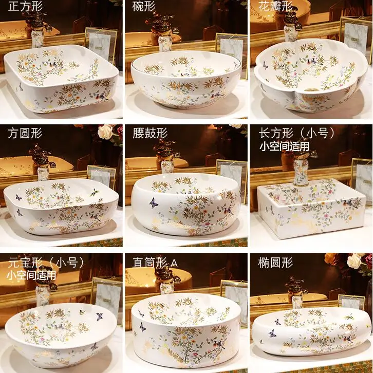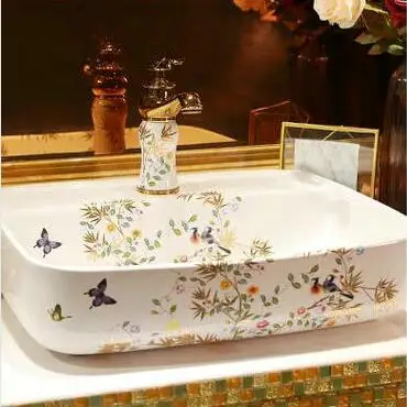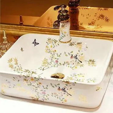 Художественный Умывальник с птицами и золотыми листьями ручной работы художественная керамическая раковина для ванной комнаты