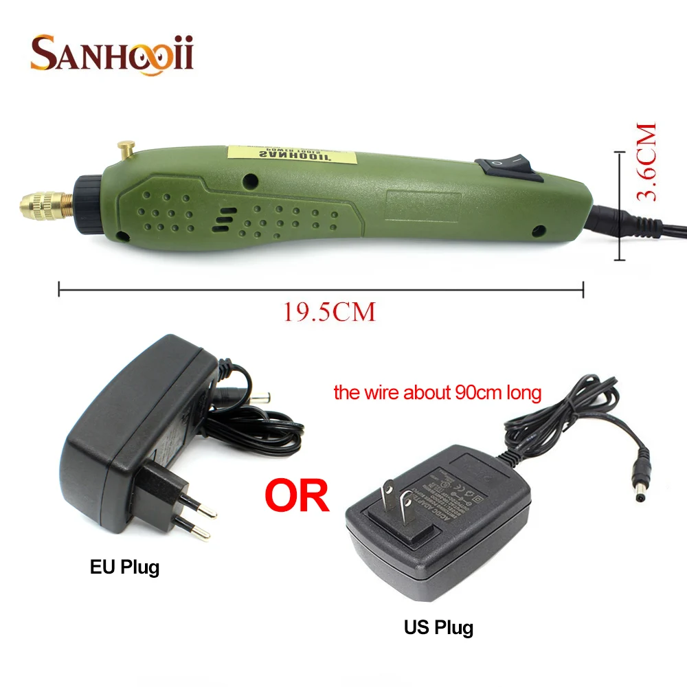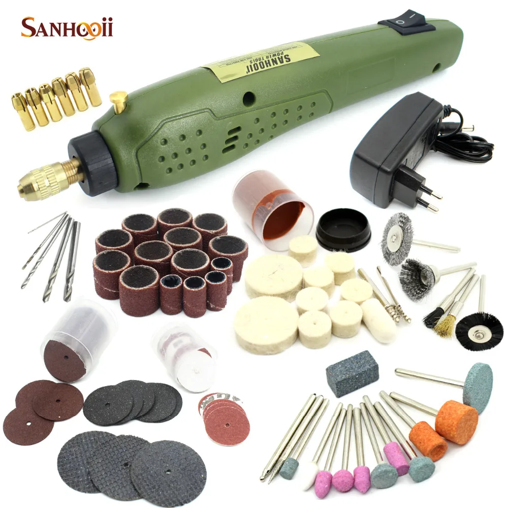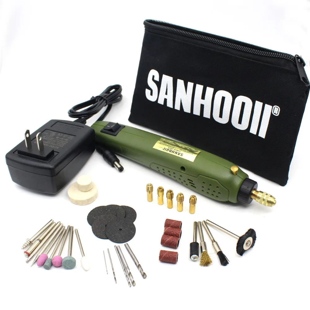 SANHOOII Мини электрическая дрель + набор шлифовальных Аксессуаров Набор гравировальных режущих инструментов 16000 об/мин 20 Вт DC 12 В/2A