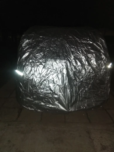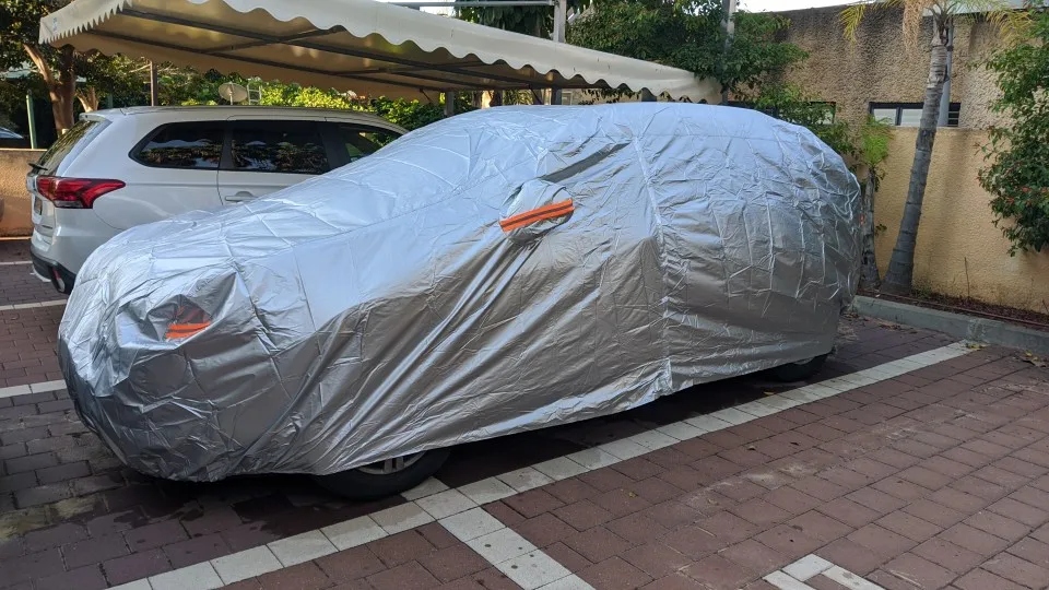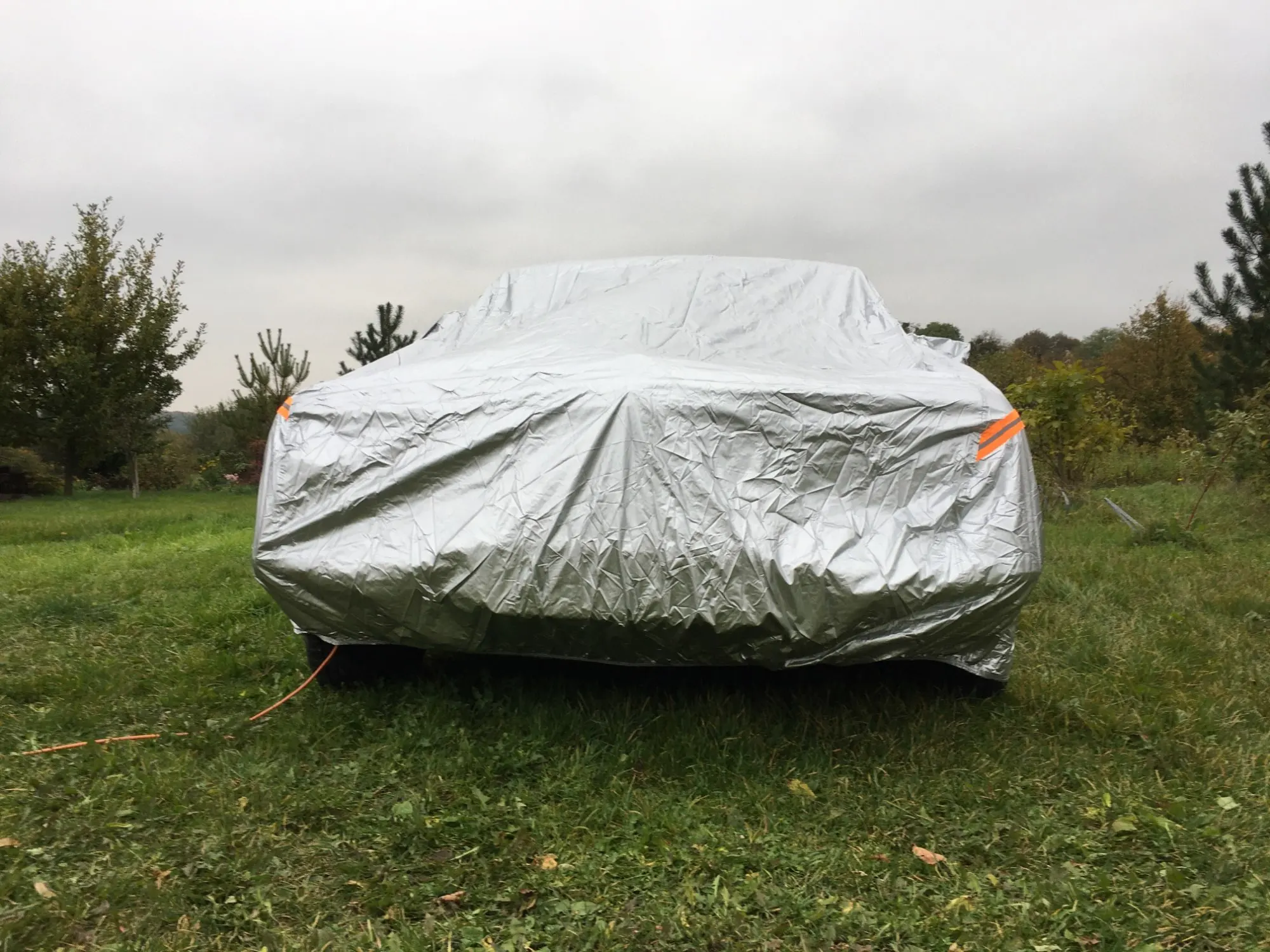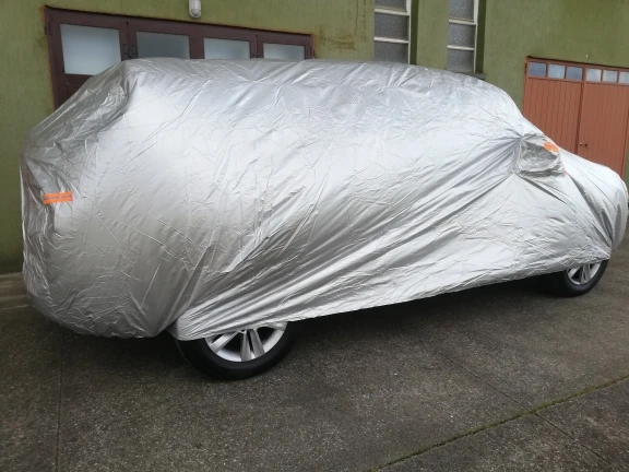 Чехол покупался на Х5 Е70, подошёл идеально. YXL размер. Задняя часть чехла только чуть больше. Не промокает, как раз накрыл и пошёл дождь. Сохнет быстро, влагу не впитывает, можно с лёгкостью стряхнуть мусор от деревьев и капли воды. Материал очень тонкий и собирается очень компактно.