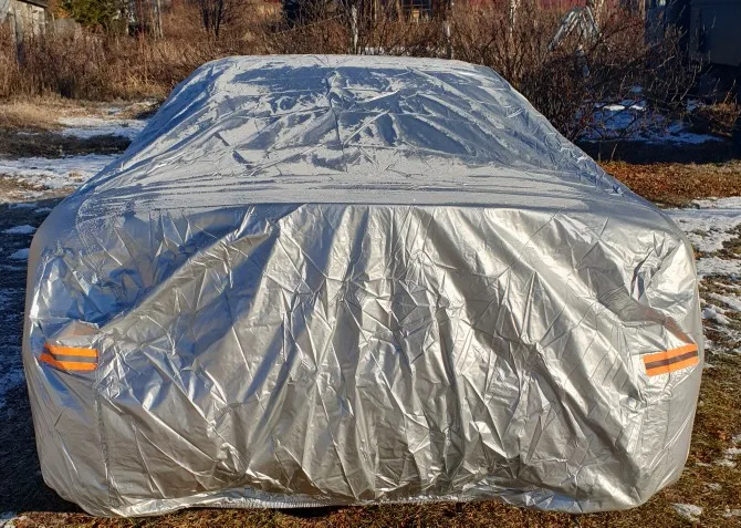 Быстрая обработка и отправление заказа. Чехол выполнен из прочного материала. Большой плюс - наличие мешка для хранения. На авто пока не примерял (сильные морозы).
