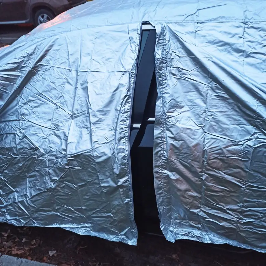 машину накрывает полностью. брал для защиты от кошки (любит сидеть на машине) для когтей думаю тонковат, не уверен что поможет, время покажет