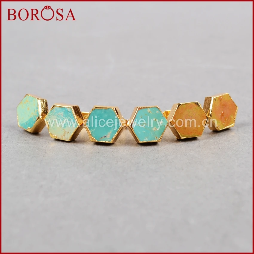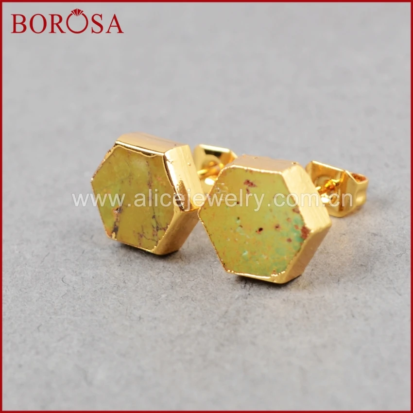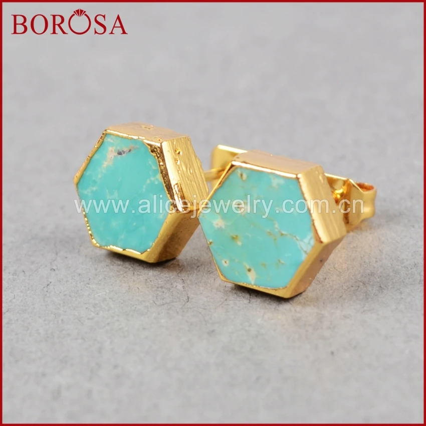 Женские шестиугольные серьги-гвоздики BOROSA, серьги из 100% натурального голубого камня, бирюзы, друза, ювелирные изделия из кварцевого кристалла, G0611