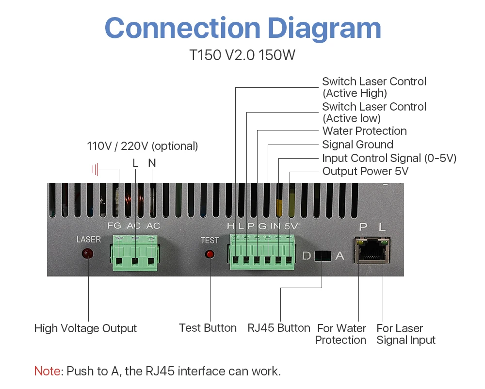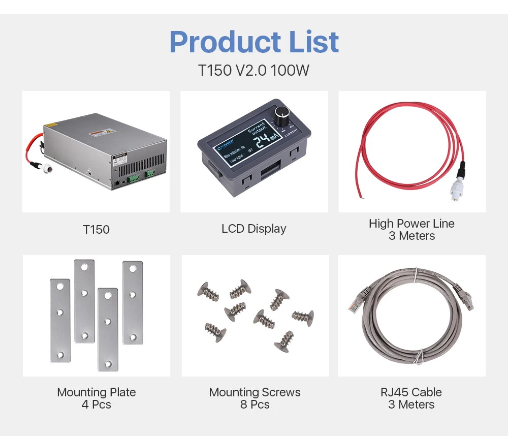 Блок питания Cloudray для лазерной гравировки и резания, 150 Вт, T150, V2.0, 110 В220 В