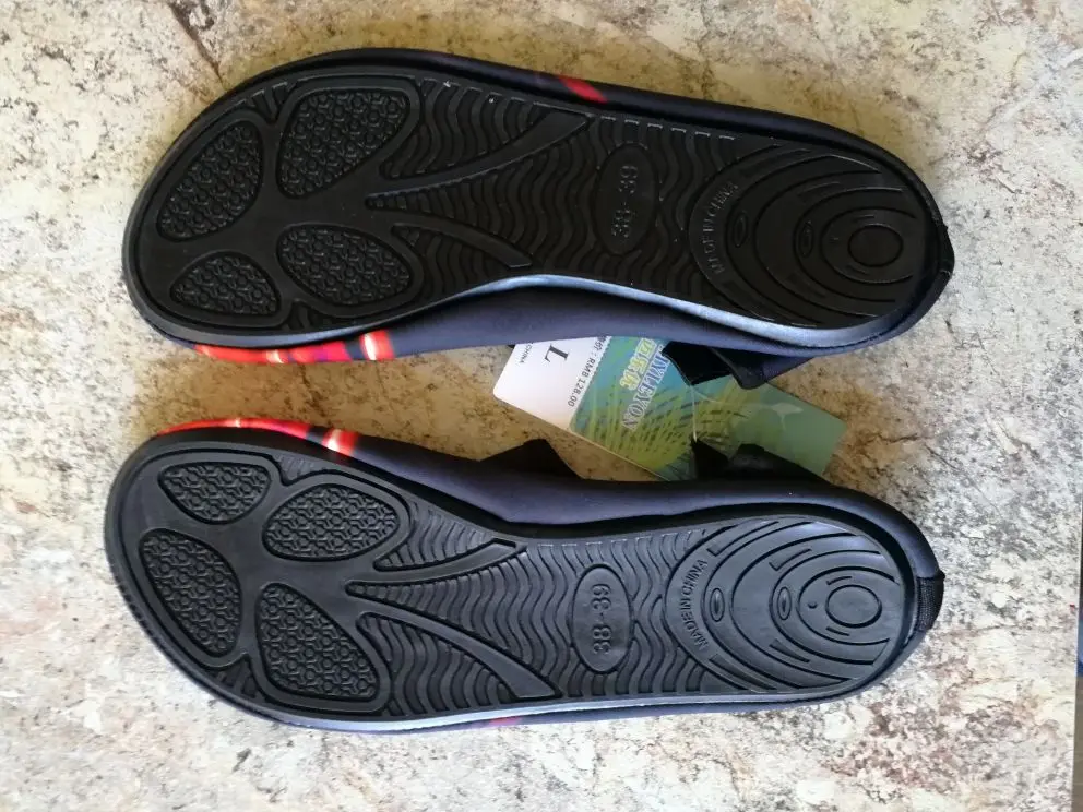 Акватуфли нормальные, но думаю их хватит на один сезон ( а может и меньше). нужно брать с обрезиненными носками.