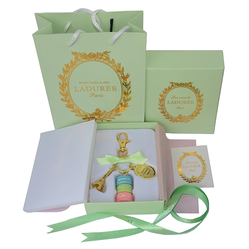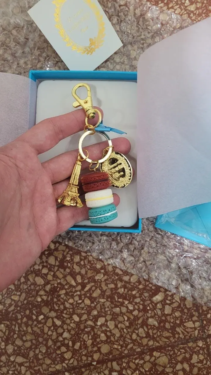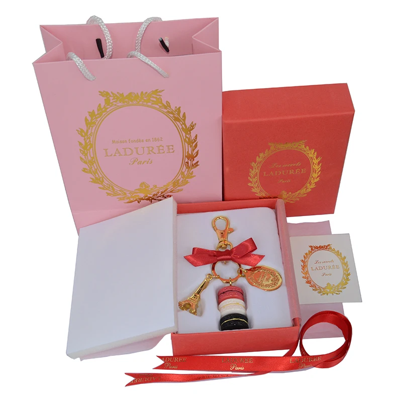 Брелок для ключей KC16 из сплава с золотым покрытием, модный брелок для ключей во Франции с большим макароном, с упаковкой в коробку