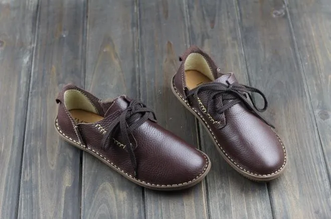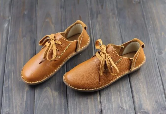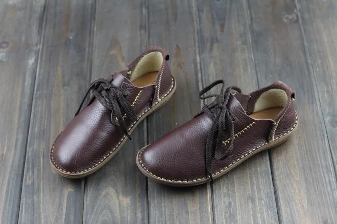 Женская обувь ручной работы, натуральная кожа, плоская подошва, одн...