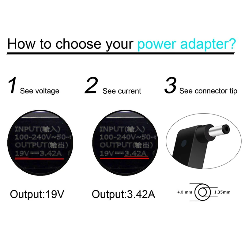 Выход: 19V 3.42A 65W 4,0*1,35 MM DC наконечник