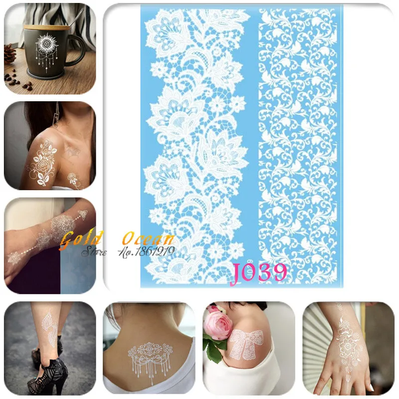 1 шт. большая Цветочная хна, водонепроницаемая тату-паста GJ039, женский браслет из хны, растения, свадебные татуировки, белые чернила, 21x15 см, большой размер