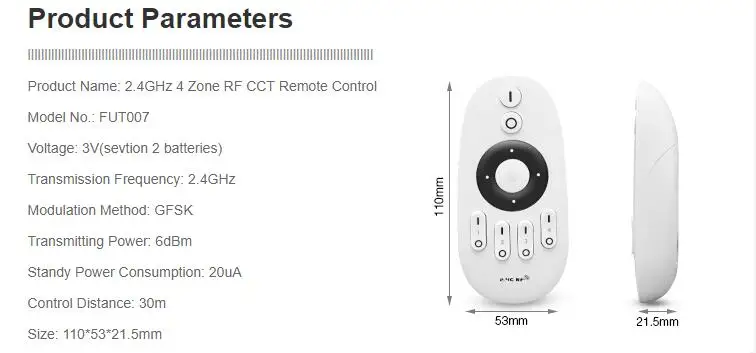 Mi светильник 2,4 г RF 4 зоны Беспроводной пульт дистанционного управления один Цвет светодиодный диммер для ми-светильник WWCW Светодиодный лампыодин Цвет светодиодный полосы