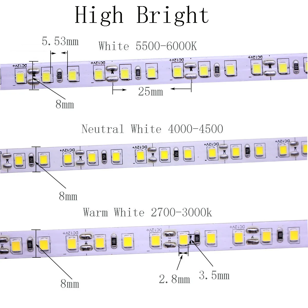 Гибкий светодиодный светильник 5 м 2835 600 s, теплый белый, красный, зеленый, синий, желтый, 12 в пост. Тока