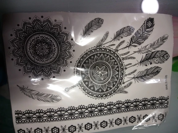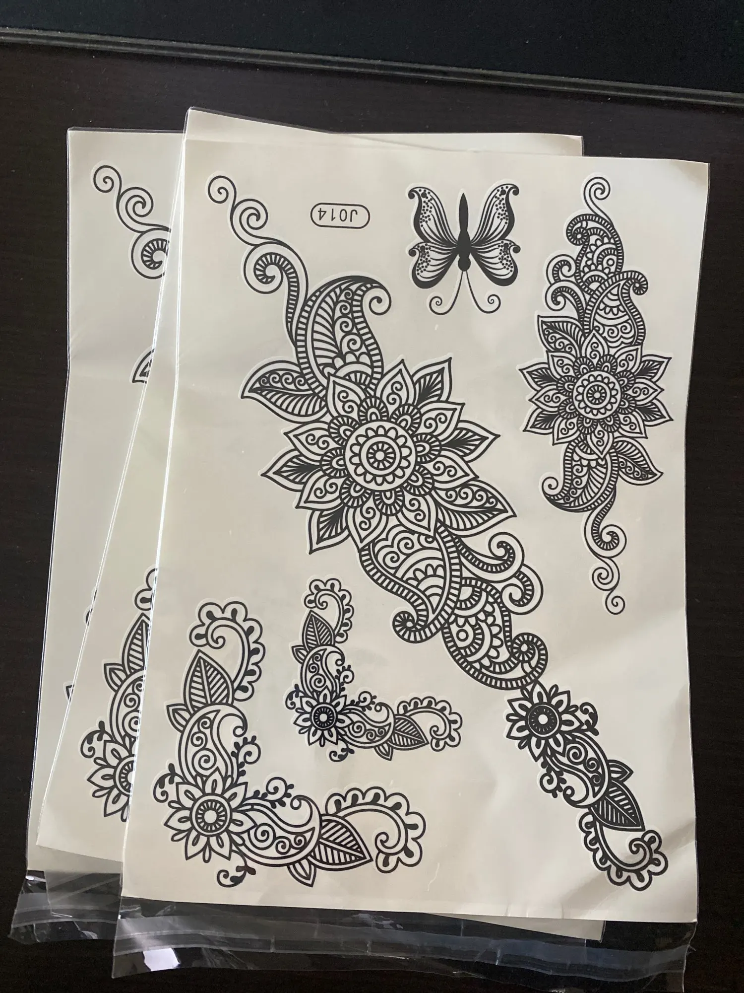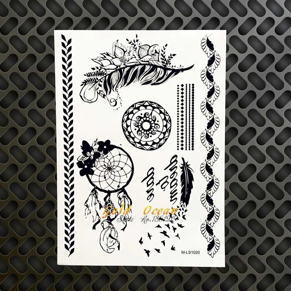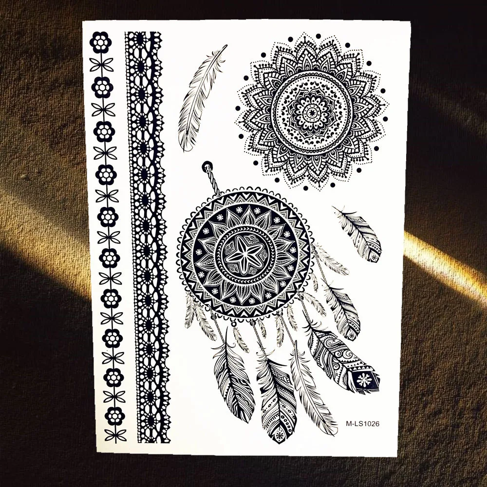 1 шт., черная хна, наклейка-татуировка, Ловец снов, дизайн GBJ013, индийский Подсолнух, большой цветок, цепочка, Свадебный Узор, татуировка, перо