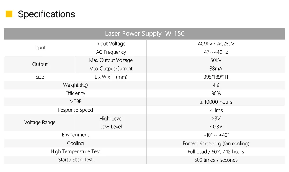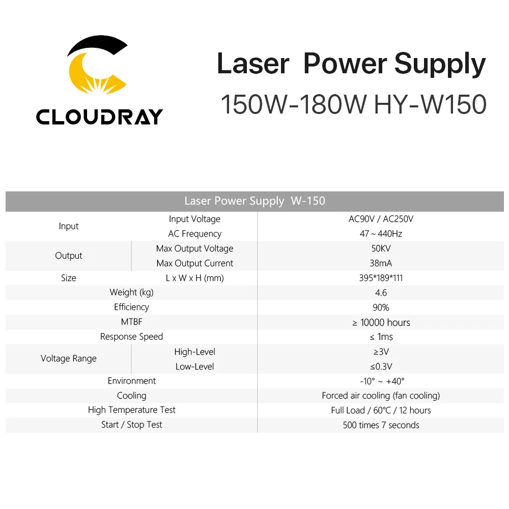 Источник питания для лазерного гравировального станка Cloudray, 150-180 Вт, HY-W150 T W