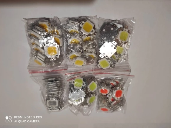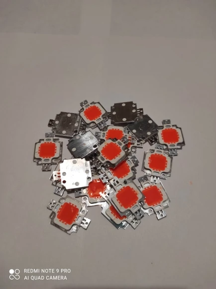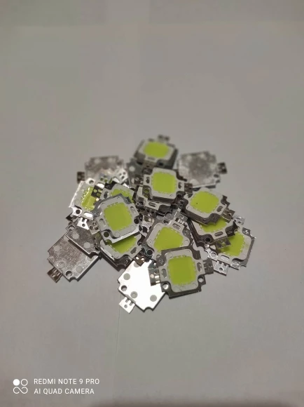 Товар отправлен быстро. Заказ был объединен с другим заказом - доставлен очень быстро. Упакован в пакет и в пупырку. Все матрицы горят, но чипы в этих матрицах имеют большой разброс - загораются не одновременно. В одной матрице некоторые чипы при номинальных токах будут перегружены, а некоторые не отдают положенные световые параметры. В матрице три линейки по три чипа. Напряжение на один чип примерно 3,2-3,4 вольта, ток около 125 ма (при этом существенно греются) . То есть максимальная мощность матрицы - не более 4 ватт!!! Да еще нельзя использовать при указанных токах из-за разброса - в общем это 3 ваттные матрицы. И это при заявленной мощности 10 ватт. А на 3 ватта можно найти и подешевле - круглые (правда у них подложка будет меньше). В общем товар на любителя - матрицы не соответствуют заявленным параметрам, но в хозяйстве применение найдут. Брал теплый белый свет.