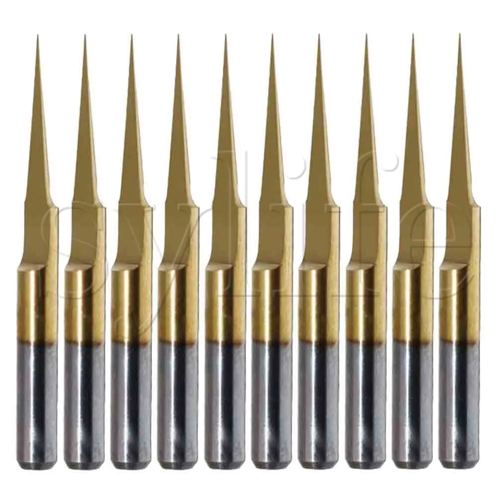 Биты для гравировки печатных плат с титановым покрытием, 10 шт., хвостовик 18 дюйма, 10 градусов, 0,1 мм