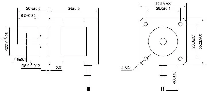 Шаговый двигатель Nema 14, 14 см (20 унций в), 35x26 мм, 12 В, 0,4 ...