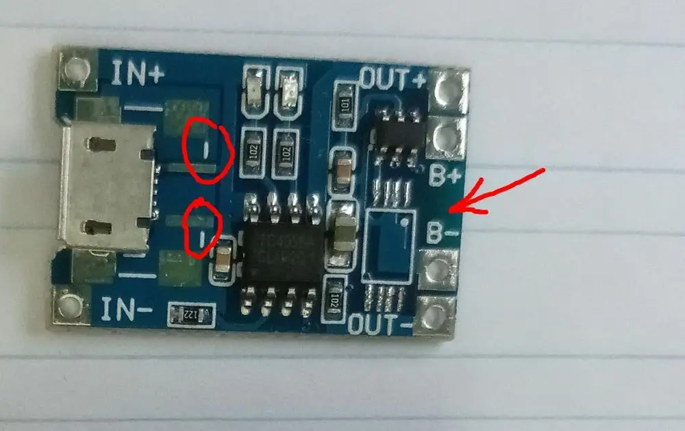 В первый раз, когда вы получаете доступ к батарее, это может не иметь напряжения между выходом + и выходом-, затем получить доступ к напряжению 5 В, зарядить вашу энергию, может активировать цепь защиты, И батарея от B + B-, затем нарисуйте линию на коротком открытом также нужно перезаряжать для активации цепи защиты. Обратите внимание, что зарядное устройство должно быть в состоянии выпустить 1A или более, чтобы сделать при использовании мобильный телефон зарядное устройство вход, или не может заряжать+ MICRO USB female и next - pads для ввода питания, доступа 5 В. B + положительная затем литиевая батарея, B-затем отрицательные литиевые батареи. Выход + и выход-подключен к нагрузке, например, к положительным и отрицательным электродам подключена Мобильная бустерная пластина или другая нагрузка.Подключите аккумулятор к B + B-, вставленный в USB женский мобильный телефон зарядное устройство, красный светильник заряжается, зеленый светильник в полном объеме.
