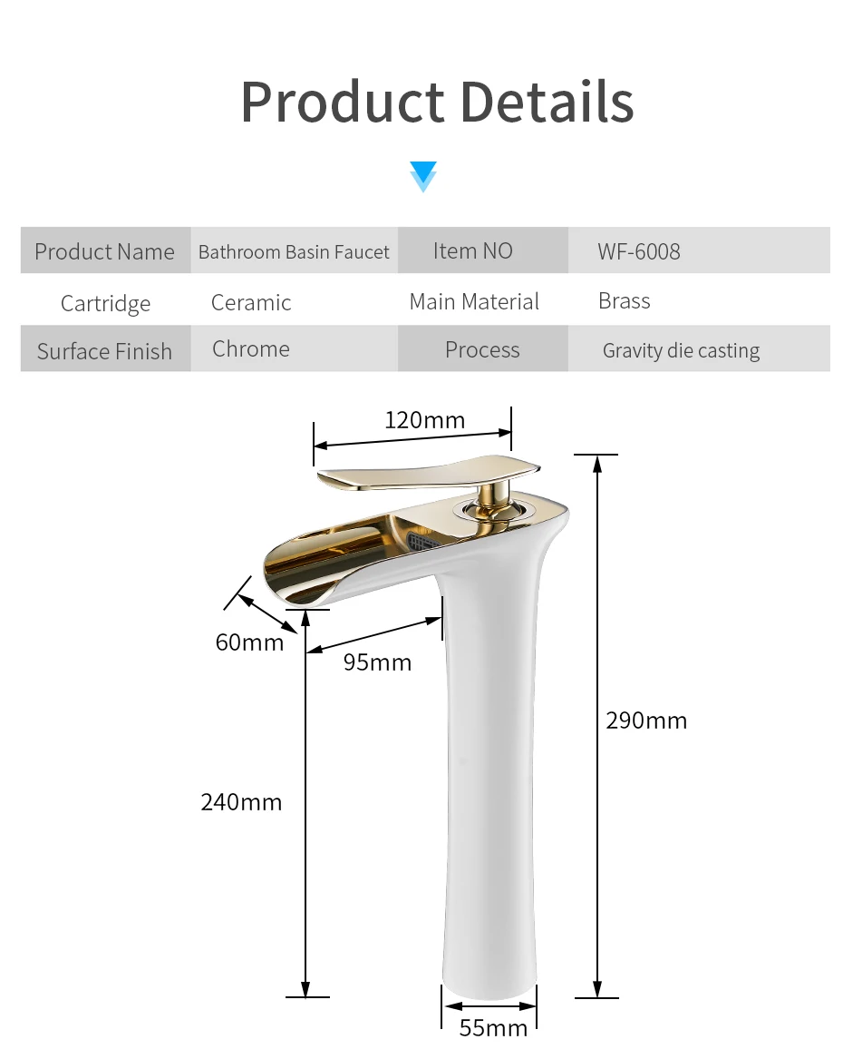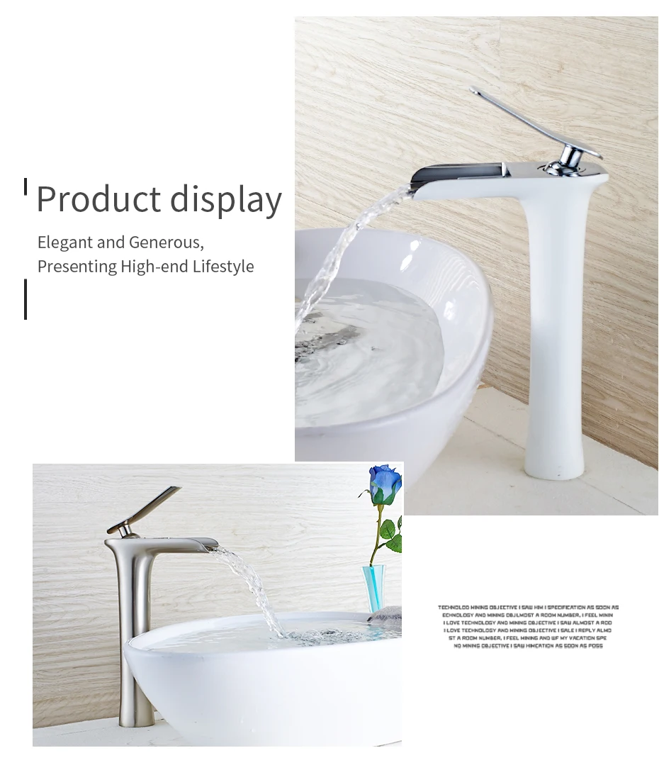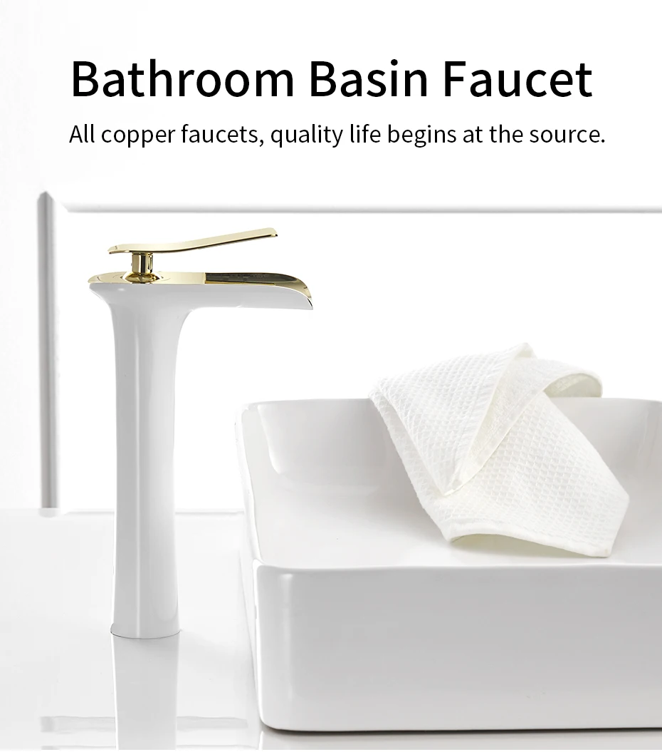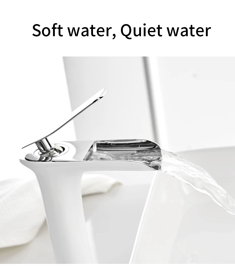Современный белый смеситель для ванной комнаты, Смесители водопада с одним отверстием, кран для холодной и горячей воды, смеситель для раковины, Смесители 6008