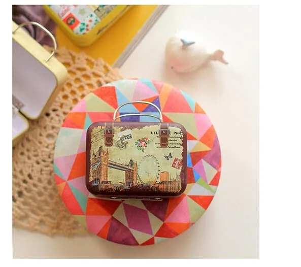 Чемодан в стиле ретро, креативный жестяной пакет для хранениякоробки для конфетжелезная Подарочная коробка для монет, бесплатная доставка, 1 лот = 10 шт.