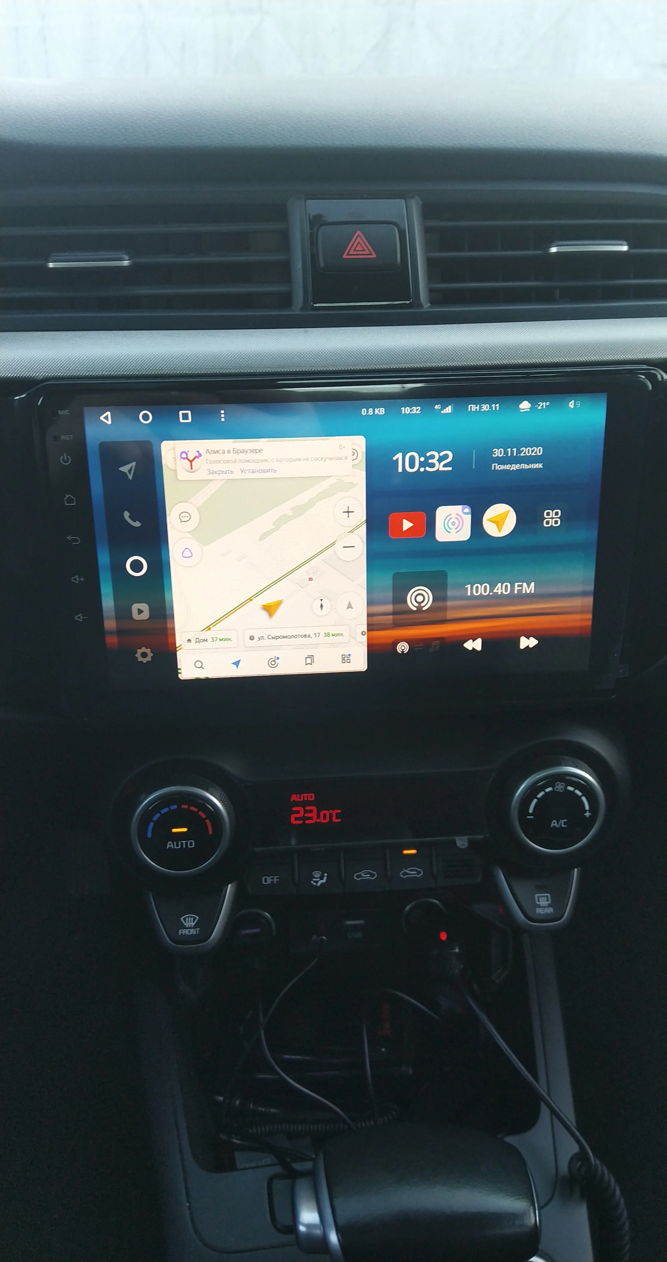 Заказывал данную магнитолу в черную пятницу со скидкой в 1700 рублей. Магнитолу брал с Российского склада в Новосибирске. Доставка заняла ровно 10 дней, доставили курьерской службой СДЭК. После получения сразу же начал устанавливать. Установка заняла примерно час времени и то больше всего потратил на поиск управляющего провода от саба. Магнитола шикарная, звук обалденный гораздо лучше чем был на Pioneer 6400BT, куча настроек эквалайзера, экран чудесный, в целом магнитола меня приятно удевила. Единственный недостаток не получилось сразу же подключить аккаунты Яндекс, что то приложение в ошибку вылетает, будем разбираться. В комплекте идет все необходимое для подключения плюс в подарок камера и сразу же с плафоном под номерной фонарь, отвёртка с болтами для прикручивания системы к рамке и сама рамка в моём случае для Kia Rio и жгут проводов для подключения.