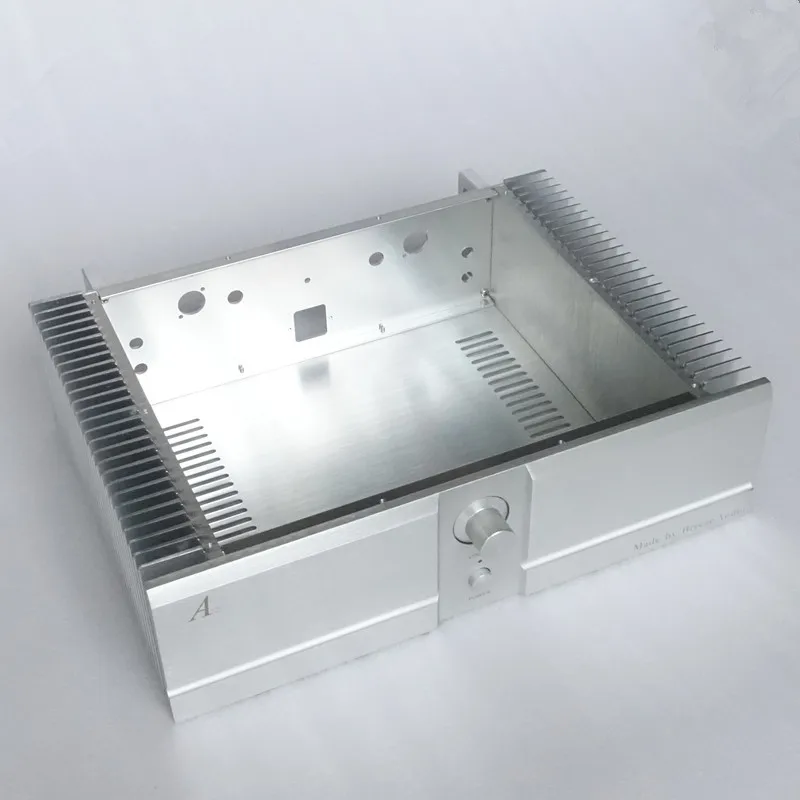 Корпус роскошный.Огромные радиаторы,толстая лицевая панель.Попросил продавца сделать заднюю панель без отверстий под балансные выходы,он пошел на встречу..Единственное ножки дерьмо,лучше заказать другие сразу. Как временные пойдут.Уже примеряю в него свой новый усилитель.