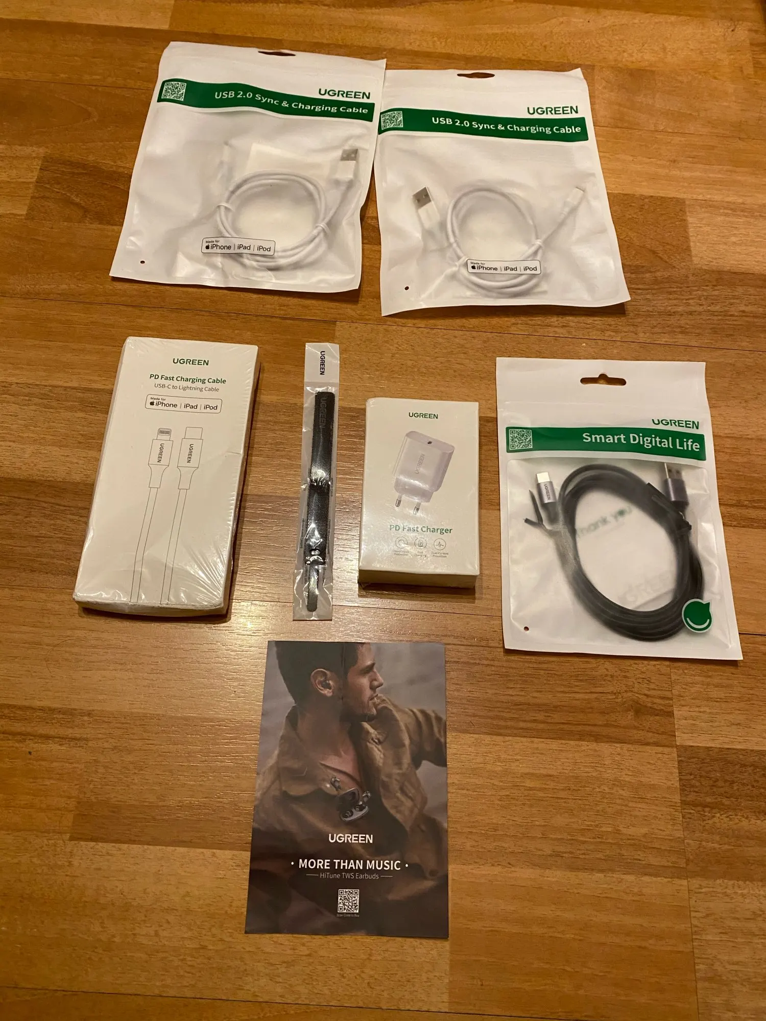 Всё в лучшем виде!!! Доставка максимально быстрая!!! Качество на уровне, цена на распродаже отличная! PD зарядка работает, кабель USB-Lighting MFI, наушники (2 пары) обе работают идеально. Всё соответствует описанию