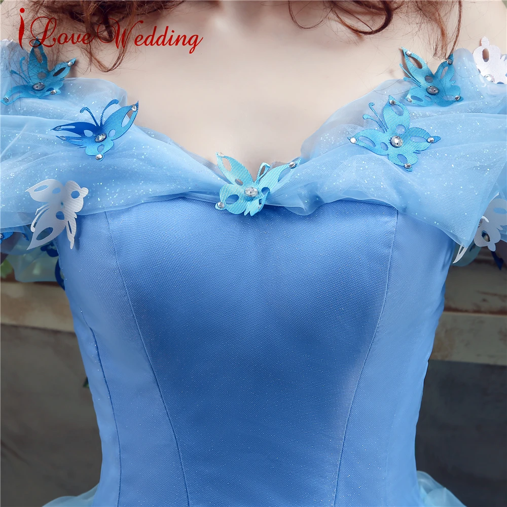Синее бальное платье 2022, платье для выпускного вечера, новое косплейное платье принцессы из фильма Золушки с открытыми плечами, длинное вечернее платье из органзы для выпускного вечера