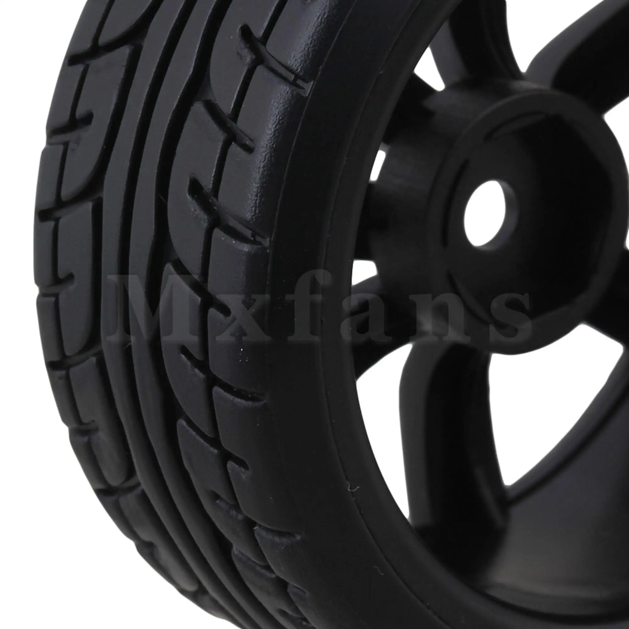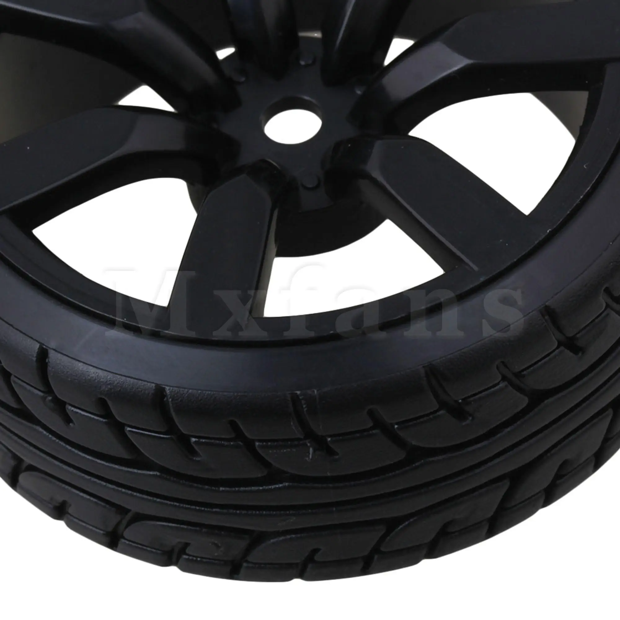 Черные 7-спицевые резиновые шины с ободом для RC1:10 On-road Racing, 4 шт.