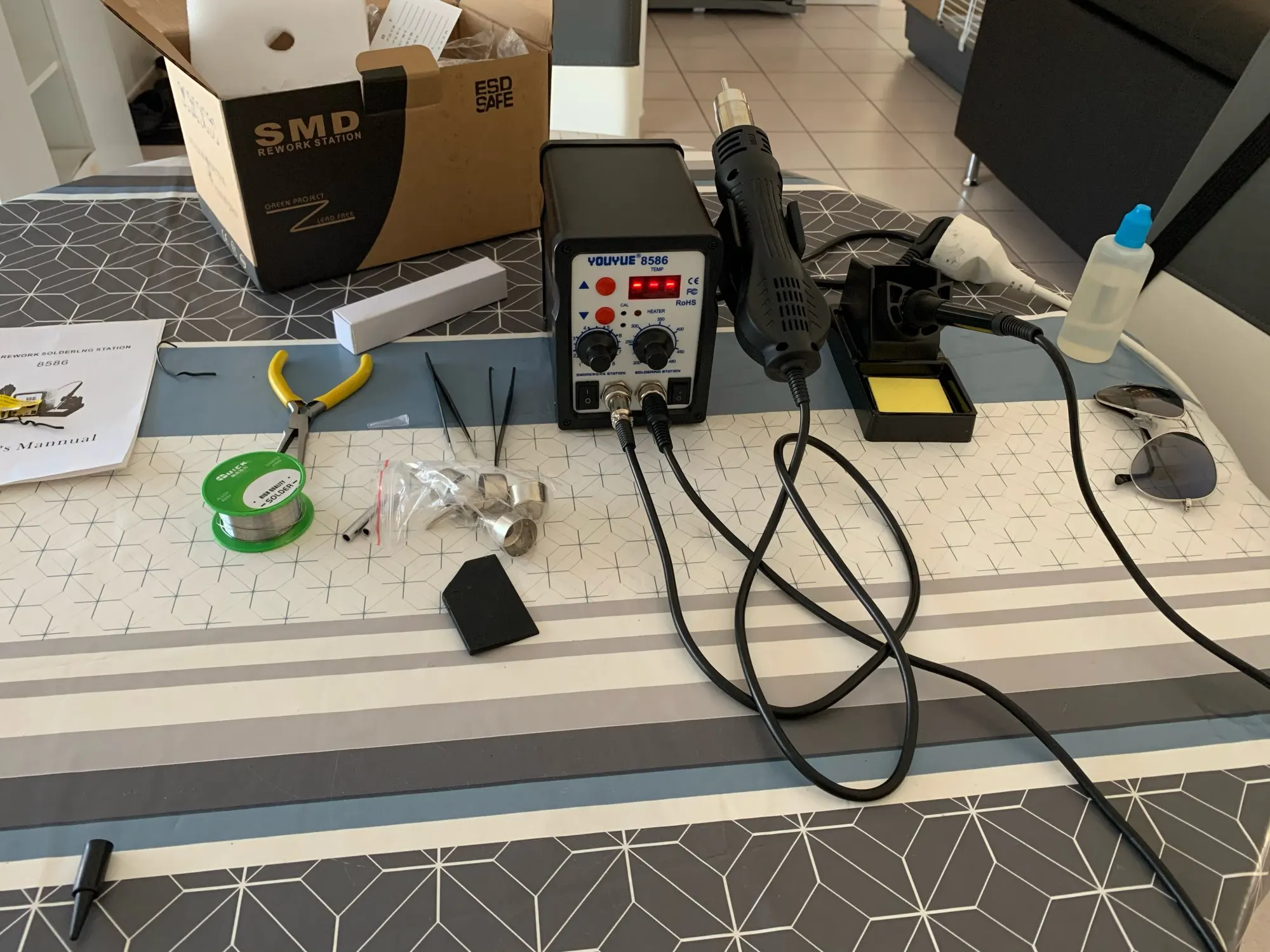 La estacion en si esta muy bien... El fallo que le veo,es que la resistencia que lleva queda bastante atras con respecto a la punta del cautin y la parte delantera no calienta,solo calienta la base,la recortare con la dremel y si la estropeo pedire un juego nuevo,por lo demas se la ve de buena calidad y la pistola de aire va de 10