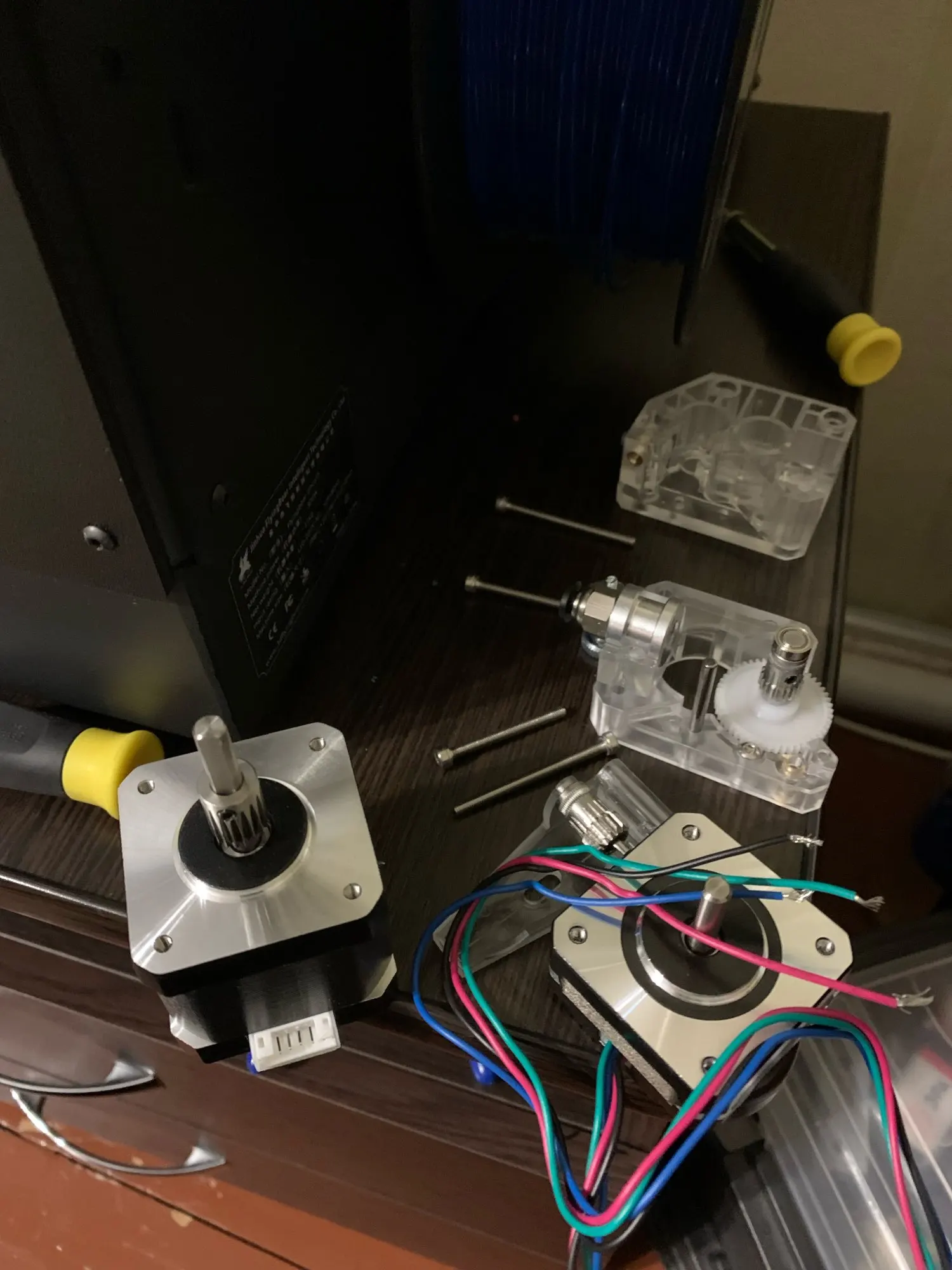 Тянет direct экструдер на flying bear 5. При разборе мотора ( для подпайки более длинных проводов) сорвалась резьба на одном из винтов крышки при его откручивании. При сборке пришлось посадить на эпоксидку, сейчас работает нормально, но потом придется заказывать новый, т.к. этот я уже не смогу разобрать.