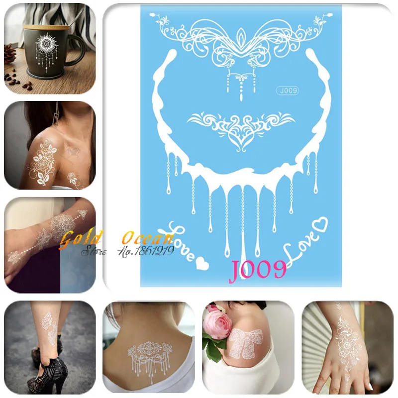1 шт. Горячая белая хна флэш металлическая татуировка стикер GJ009 лоза Корона Кулоны "любовь" Свадьба Татуировка Чокер белый на спине грудь шеи