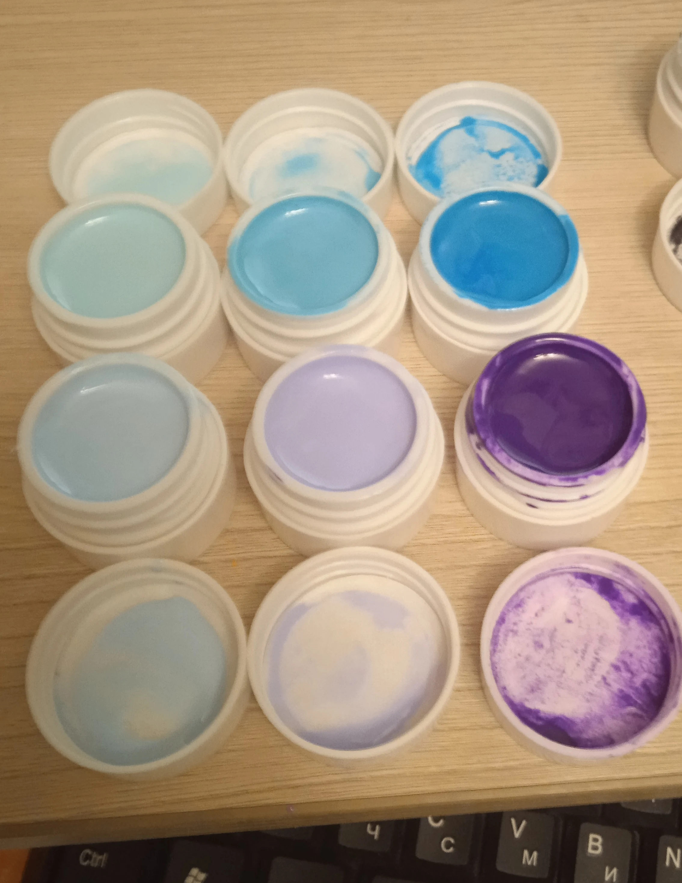 Очень красивые цвета! Некоторые не были полностью смешаны, поэтому мне пришлось немного смешать их, но это прекрасно. Я очень доволен товаром!