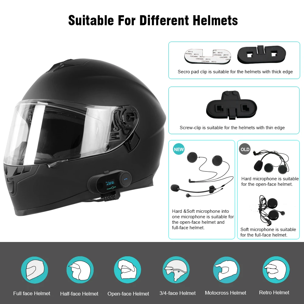 Оригинальная Улучшенная Bluetooth гарнитура для мотоциклетного шлема FreedConn с ЖК-экраном, FM-радио