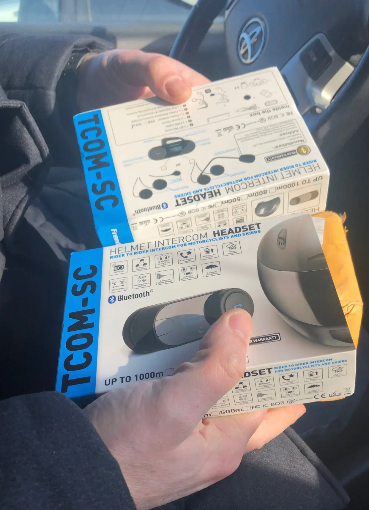 Доставка до Тюмени 14 дней в пятёрочку. Устройства однозначно стоят своих денег. Качество связи в режиме интеркома отличное, как с микрофоном для интегрального шлема, так и 3/4. Уровень звука очень громкий (кто в отзывах пишет, что тихо, не забывайте прибавлять уровень на телефоне). Качество звука среднее. Низы есть. Умеренные, середина и верх поболее. Не SONY, но меня полностью устроило качество звука за эти деньги. Динамики не хрипят на высокой громкости. Мысли были перепаять на малогабаритные PANASONIC, но эффекта будет не много. Короче, реальность превзошла мои ожидания!