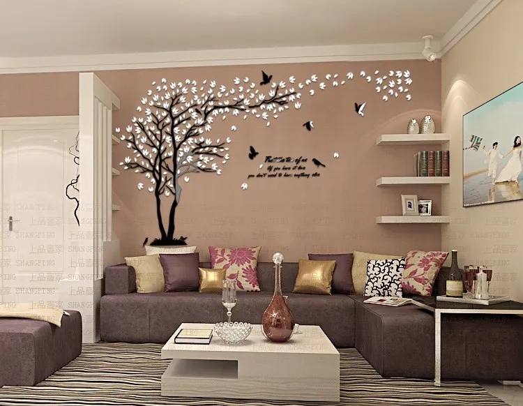 Акриловые настенные наклейки большого размера с изображением влюбленных дерева для гостиной, телевизора, дивана, стен, 3D художественные декоративные аксессуары, домашний декор