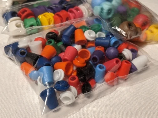Nice plastic cord ends. Good for sweater hoods, jackets, swimming trunks etc.