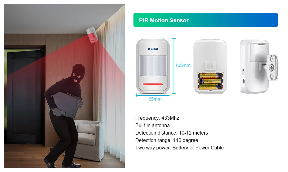 Примечание: Аккумуляторы для датчиков движения и Дверных датчиков не включены из-за авиационных ограничений!