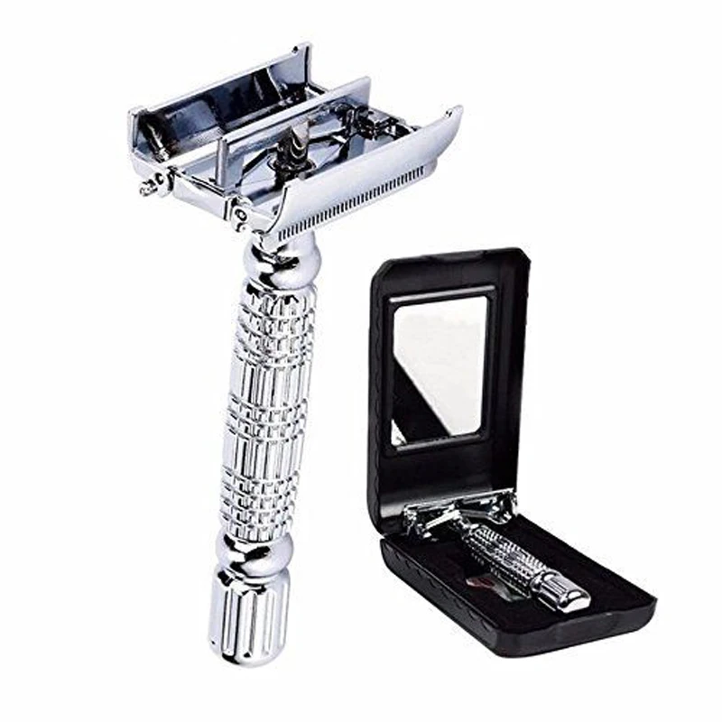 Мужская безопасная бритва, хромированный сплав с упаковкой, откручиваемая двухсторонняя головка, ручная бритва в форме бабочки