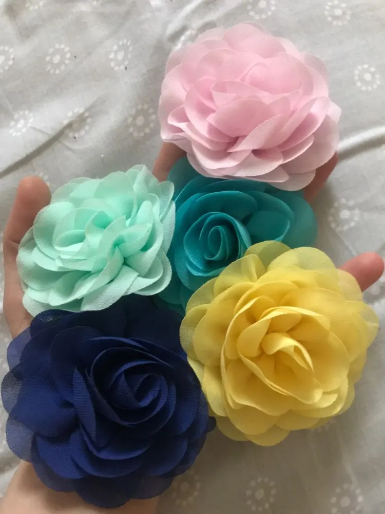 Зажимы для волос в виде цветка мака, 8,5 см, шифоновые лепестки для новорожденных дюйма, тканевые розы в рулоне, аксессуары для волос Детские волосы для девочек