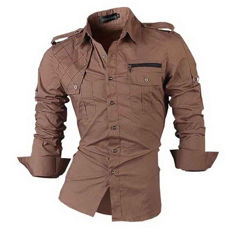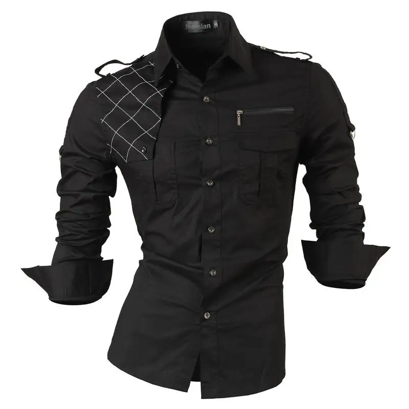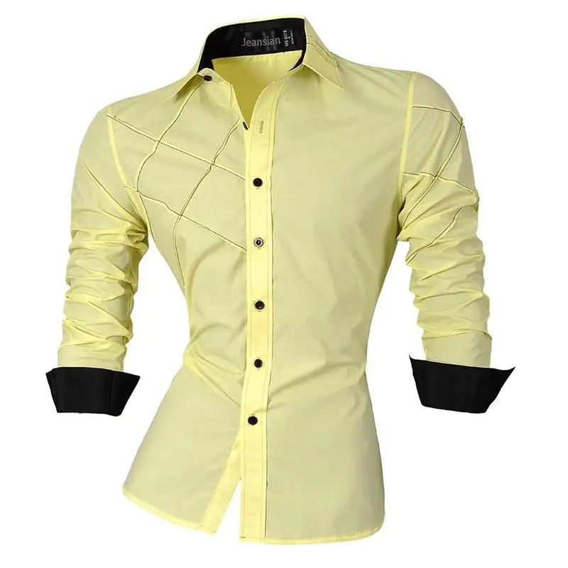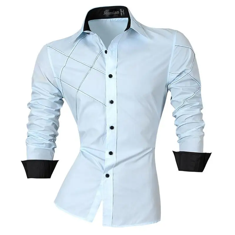 Рубашка jeansian весна-осень, мужская повседневная рубашка с длинным рукавом, приталенная Мужская рубашка, украшение на молнии (без карманов) Z018