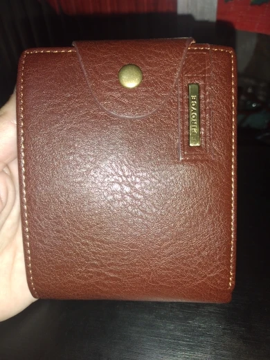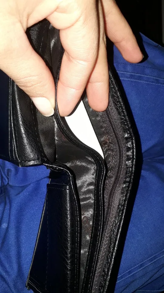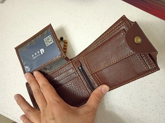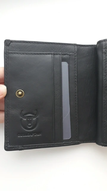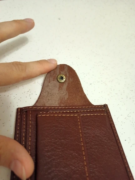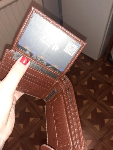 Кнопка при транспортировке поцарапалась. Часть кошелька была обернута картоном, до кнопки не дотянули. В общем сделан хлипко, прошит более менее, а вот клей видно везде, что печалит. Понравился цвет, красивый коричневый. В остальном на троечку. Поищите что нибудь по лучше. С продавцом не общалась.