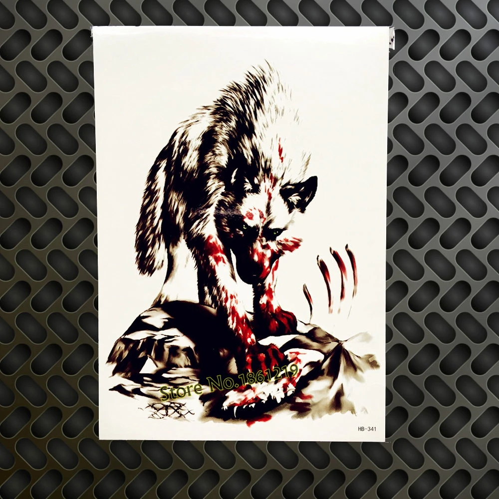 Модные сексуальные водостойкие временные тату-наклейки волка цвета воды для женщин и мужчин, водостойкие тату с большими руками 21x15 см