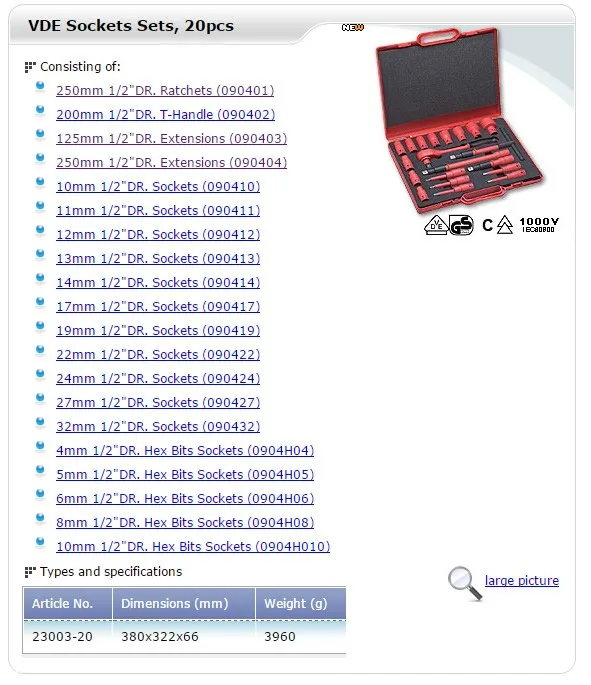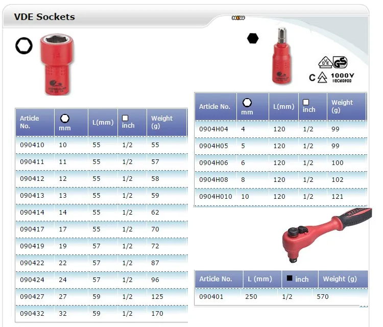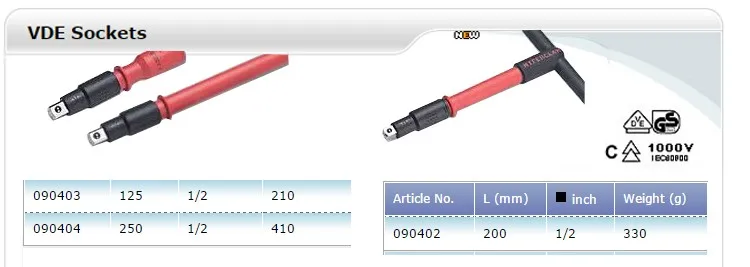 Промышленные изолированные инструменты VDE 20 шт. 1000 В 12 ключ-Трещотка розетки Т-образная Шестигранная головка 4202