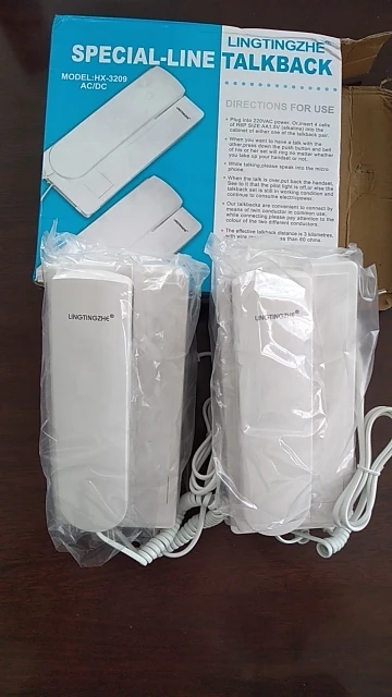 1 комплект двойной провод, прикрученный к задней части оснований, чтобы соединить каждый набор вместе (провод не входит в комплект), в пределах 30 м использования, вы можете использовать многожильный кабель для подключения каждого набора, правильно, 1-1,2-2, в каждой задней части телефонов, расстояние использования 30-80 м, для подключения можно использовать медный провод.