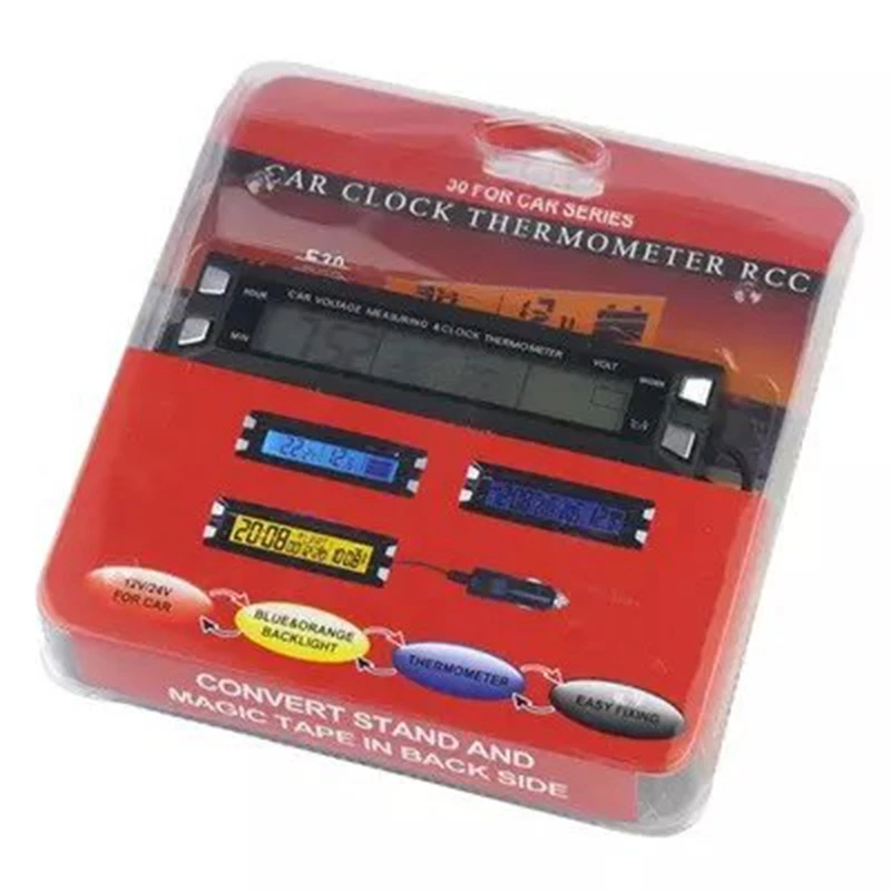 Цифровой ЖК-дисплей 3 в 1, автомобильные часы-термометр, 12 В, 24 В, монитор напряжения автомобиля, измеритель температуры, вольтметр, синяя, оранжевая подсветка