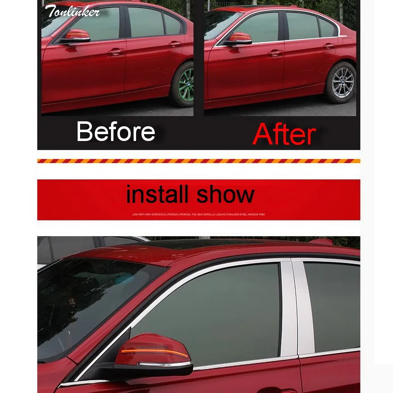 Автомобильная Лента Tonlinker из нержавеющей стали для подсветильник окон, 6-8 шт., наклейки на чехол для Bmw F30 316i 328 320i 3 серии, аксессуары