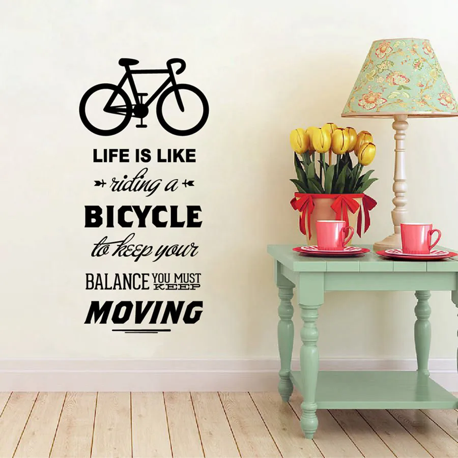 Жизнь как езда на велосипеде Цитата Настенная Наклейка с велосипедом DIY велосипедные слова виниловая наклейка на стену для велосипеда наклейка для украшения дома